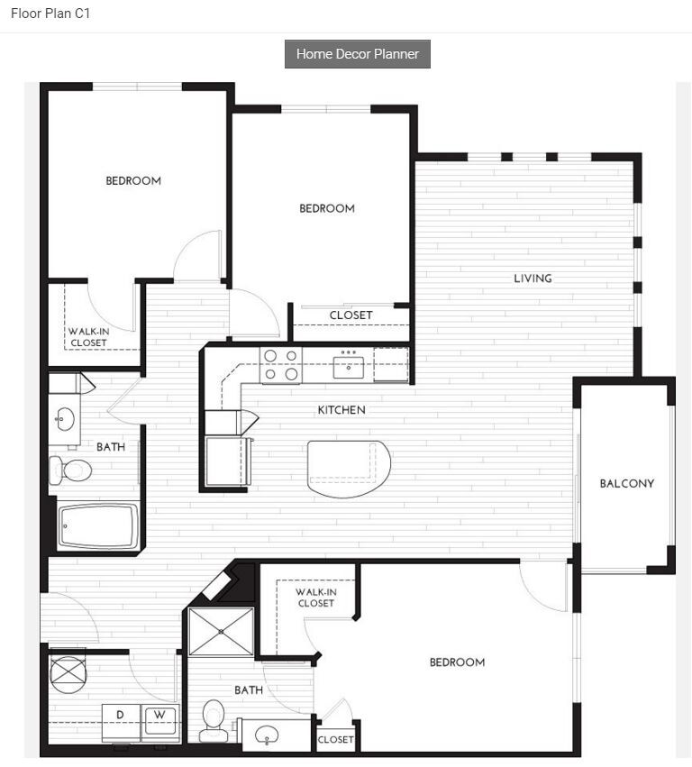 Modelo de apartamento: A3Desde $1,3921 Dormitorio, 1 Baño, 753 sq ftDisponible Ahora![]()