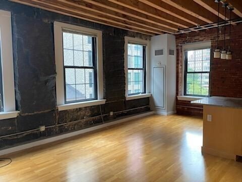 Unique Brick and Beam Corner one bedroom AVAILABLE 11/1! This front corner features original granite and brick walls with oversized windows and an abundance of light. Spacious open floor plan living area opens to a dining area and kitchen with Greenway views. The fully appointed kitchen offers granite counters, ample storage and stainless appliances. The character continues into the large bedroom where you find a brick wall, large window and custom closet. Additional oversized storage closet in unit. Hardwood floors through out. Laundry in unit. Broadluxe is an elevator building with an on site superintendent & located next to the Rose Kennedy Greenway, Financial District, North End, Faneuil Hall, Seaport, Harbor walk and accessible to all that Boston has to offer. Inquire with listing agent for parking options. 101