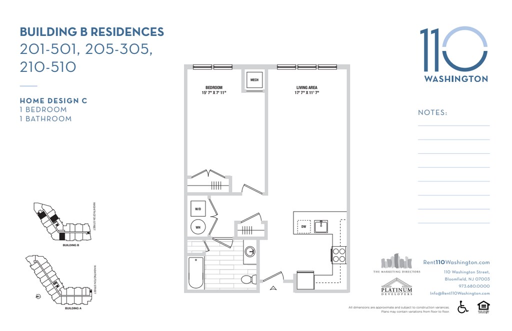 1 dormitorio en 110 Washington a partir de $2,414. ¡Llámenos para obtener más información!