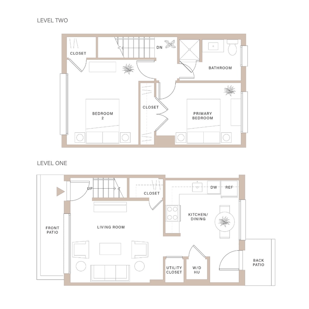 2 Dormitorios, 1 Baño, 900 pies²Disponible AhoraGalería del Modelo