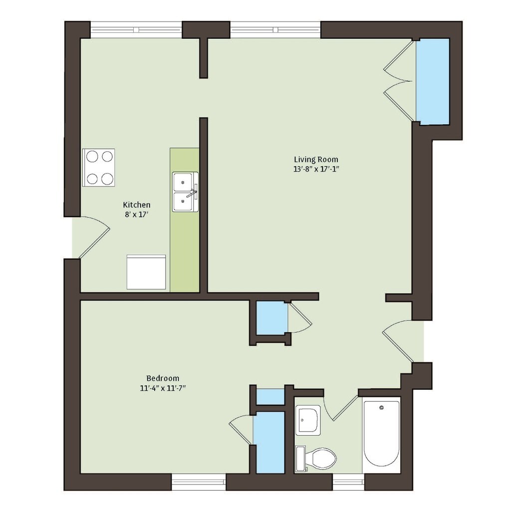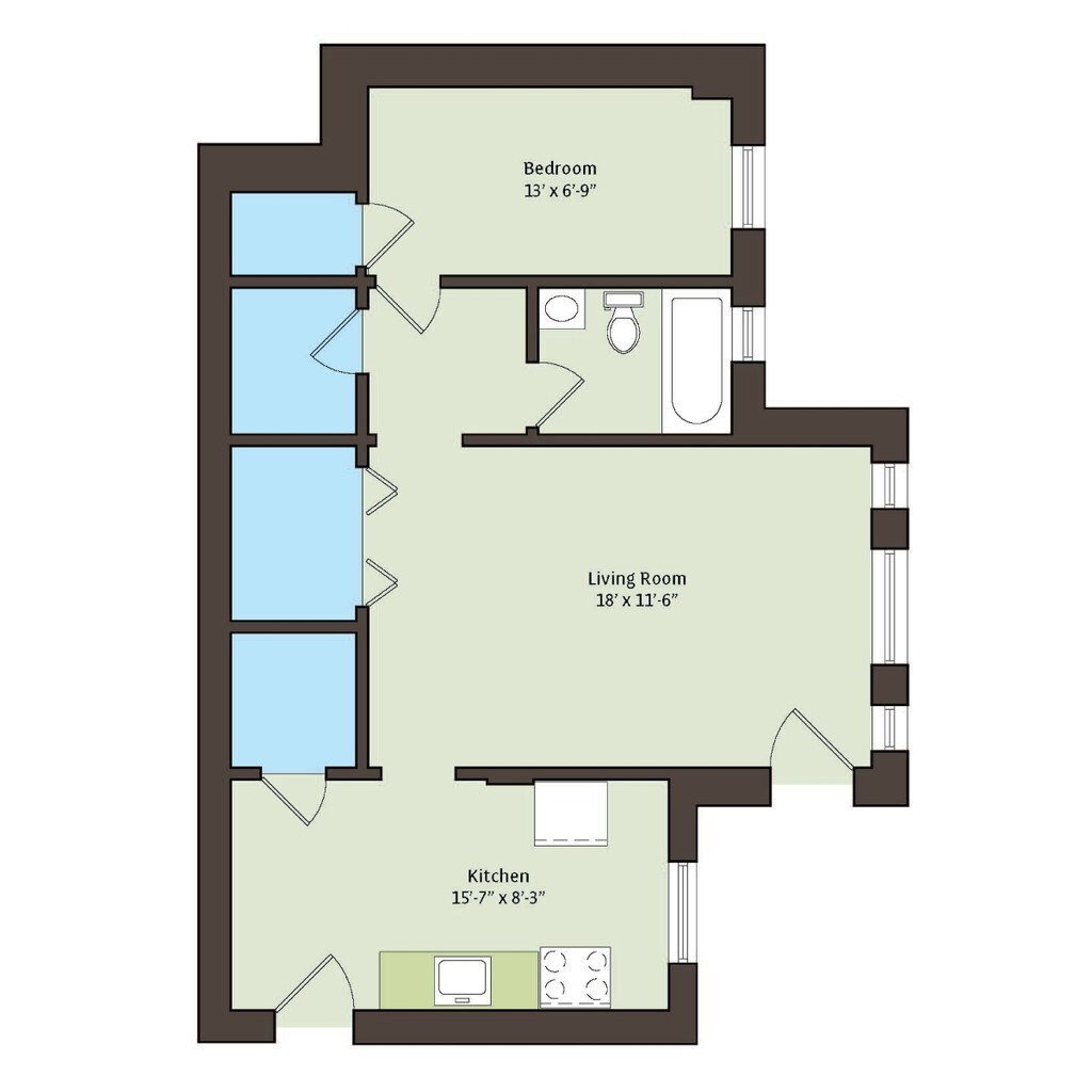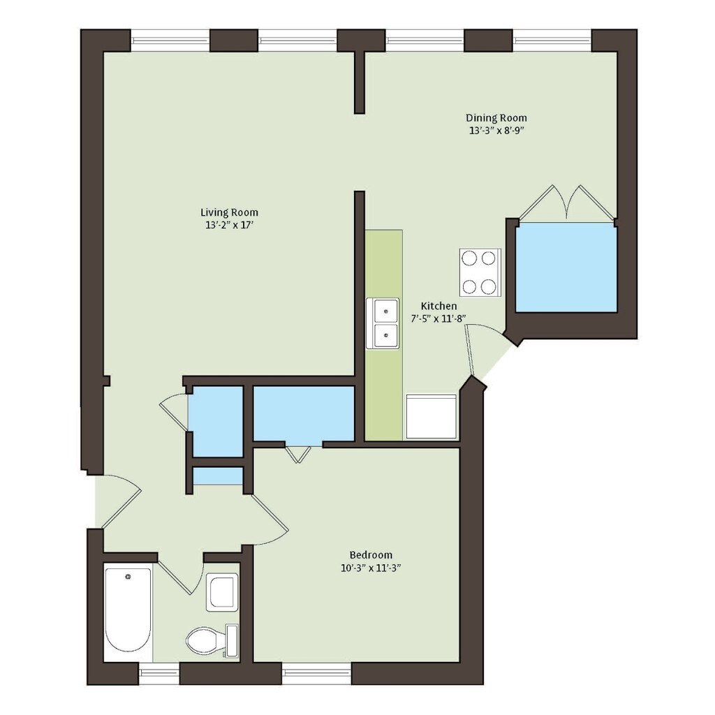 1 Dormitorio, 1 Baño, 696-716 pies²Disponible AhoraGalería del Modelo