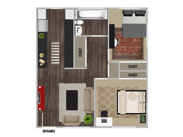 2 Dormitorios, 1 Baño, 750 pies²Galería del Modelo