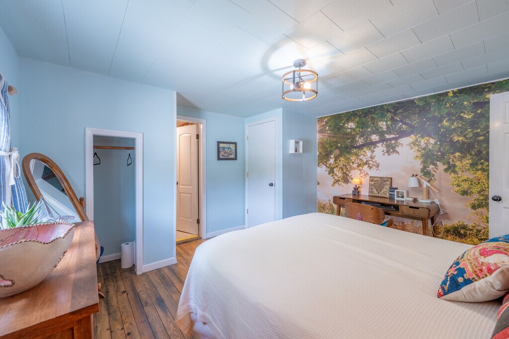 Unit 3: This sunny and chic ground floor apartment is located in the front half of a charming 100-year-old house that has three separate apartments. Boasting a private porch entry facing Rogers St, two parking spaces, a large fenced yard, stylish furnishings, hardwood floors, in-room climate control, electric fireplace, in-unit washer/dryer, kitchen fully stocked with cooking utensils, keurig coffee, and a full bathtub/ shower. Perfect for traveling healthcare workers, business travelers or visiting scholars. ------------------------------------------------------------------ Property: The property is surrounded by a flower garden and grass lawn that is well-maintained. Renters share a large, 5-foot high fenced-in yard with secure gates. The yard includes a bench swing, fire pit, raised bed garden, compost bin, hammock, three chairs and Wi-Fi access throughout. -------------------------------------------------------------------- Neighborhood: Historic McDoel Gardens is named after the colorful gardens that many of the neighbors maintain. This neighborhood is the perfect mix of walkability, convenience and quiet. Located near the B-Line Trail and Switchyard Park, Indiana University campus and downtown Bloomington are both an easy 20-minute walk or 5-minute bike ride. City bus 2W stops are less than a block away in either direction on Rogers. Property is less than 2 blks from Hopscotch Coffee, Cardinal Spirits, Southern Stone and Feast Cafe! -------------------------------------------------------------------- What to do during your stay: Try the Hoosier Hills Climbing Gym located across the street in the limestone church or look up the city's events planned at Switchyard Park for free movies, concerts and food festivals.