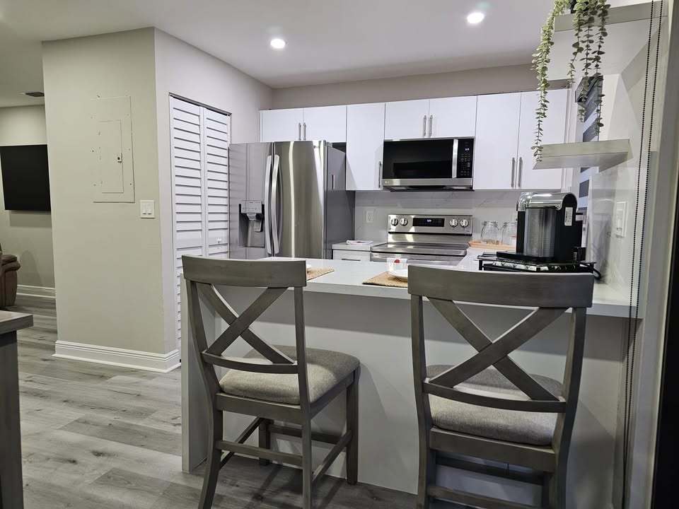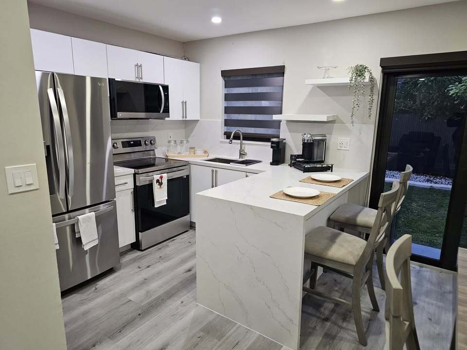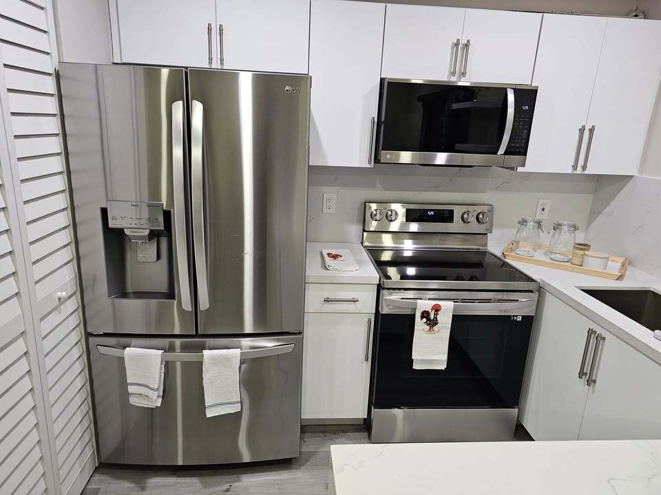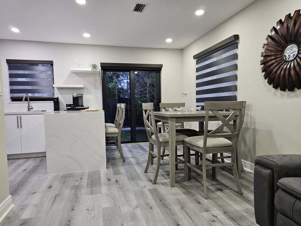 Experience the perfect blend of comfort and style in this fully furnished 1-bedroom, 1-bathroom spacious apartment. Nestled behind a private gated entrance, the property boasts a beautifully landscaped private yard featuring a lanai with designer patio furniture, perfect for relaxation or entertaining. Completely remodeled from floor to ceiling, this apartment offers modern living at its finest. With brand-new plank flooring throughout, the apartment features recessed lighting and a brand-new kitchen with quartz countertops, an eat-in breakfast bar, and top-of-the-line stainless steel LG appliances, including a state-of-the-art 3 door refrigerator, convection oven with air fryer, and microwave. The kitchen is further enhanced by a stylish farmhouse sink, adding a touch of charm to the contemporary design. The bathroom showcases a porcelain tile walk-in shower with an upgraded cabinet and designer faucet. Furthermore, the oversized bedroom offers a massive walk-in closet. Enjoy the convenience of an in-unit washer and dryer, independent central AC, tankless water heater for extra storage space, and added peace of mind with security cameras. Utilities include cable TV and water, making your living experience even more hassle-free. Centrally located and with too many features to list, this gem must be seen to be fully appreciated. Schedule your tour today! $2,150/month rent (First, last and security deposit plus broker fee & security screening). Contact William Lopez, Realtor, GPS Realty & Property Management LLC to learn more.