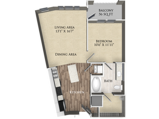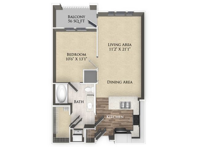 1 Dormitorio, 1 Baño, 693 pies²Disponible AhoraGalería del Modelo