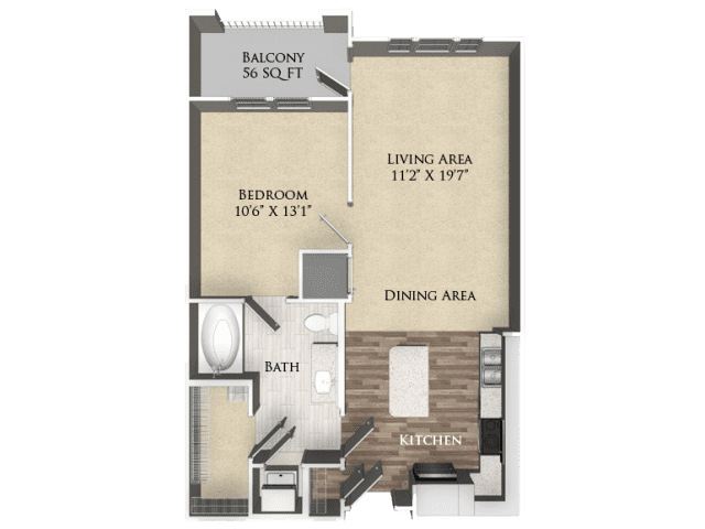 1 Dormitorio, 1 Baño, 682 pies²Disponible AhoraGalería del Modelo