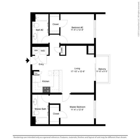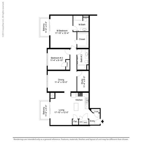 Modelo de apartamento: A3Desde $2,9741 Dormitorio, 1 Baño, 755 sq ftDisponible Ahora![]()
