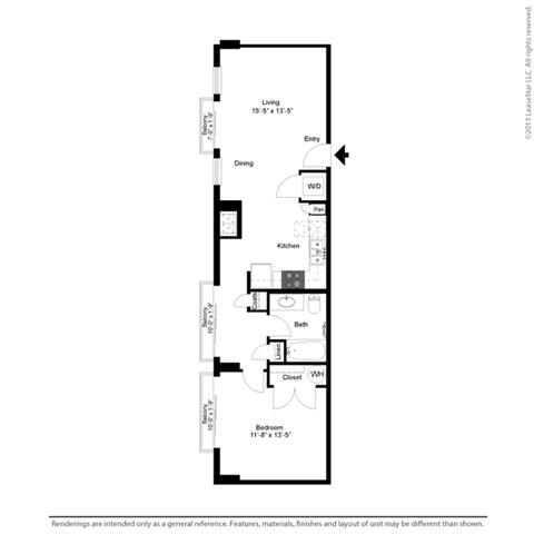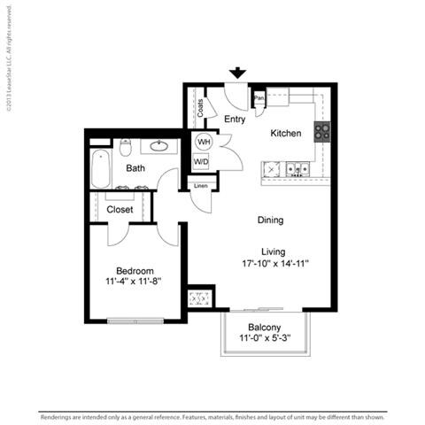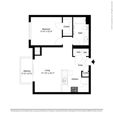 Modelo de apartamento: A1Desde $2,5791 Dormitorio, 1 Baño, 733-740 sq ftDisponible Ahora![]()