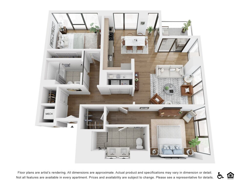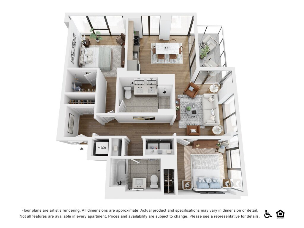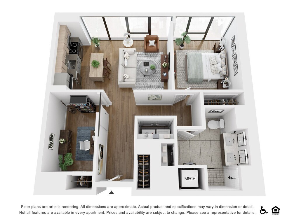 One Bedroom 1A - Plano 3 Los planos de la planta son una interpretación artística. Todas las dimensiones son aproximadas. Los tamaños o el detalle del producto real y sus especificaciones pueden variar. No todas las características están disponibles en todos los hogares para rentar. Los precios y la disponibilidad están sujetos a cambios. El alquiler que se muestra es mensual. Se pueden aplicar ciertos cargos, por ejemplo, entrega de paquetes, recolección de basura, agua, servicios, etc. Depositos varian. Consulta a un representante para conocer detalles.