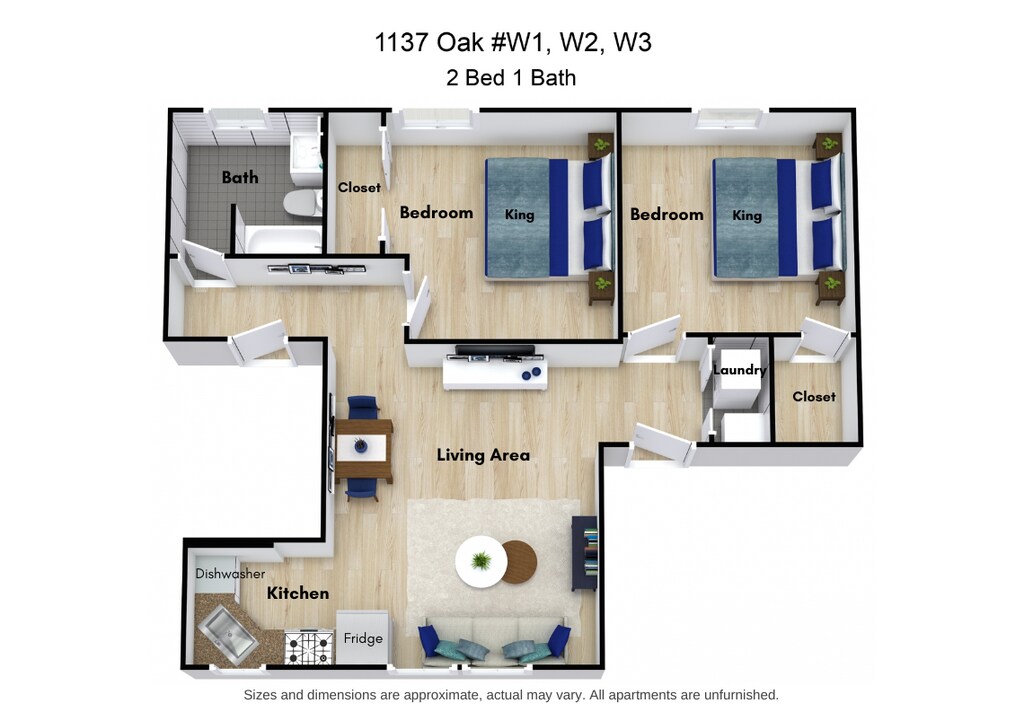 Unidad: 2Modelo: 2 - 1137 Oak Ave$2,3502 Dormitorios, 1 Baño, 100 sq ftDisponible December 1, 2025