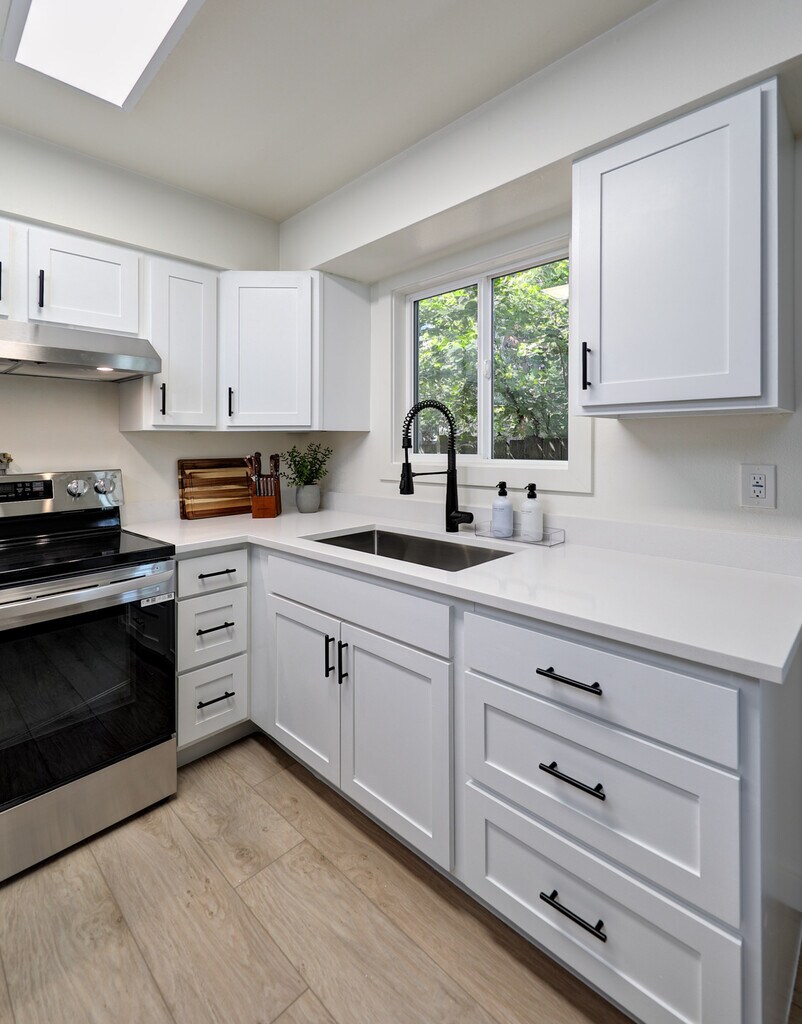 Tigard Completely Remodeled 2 bedroom unit with Onsite Laundry Located on Busline, Minutes from 217 and I-5 with Off Street Parking! Small Community close to everything! All units undergoing complete remodel. Two level buildings with ample parking. Each unit features LVP flooring, New paint and baseboards throughout. Decorator touches with custom lighting and more. Kitchens have new cabinetry with trendy black hardware, quartz slab countertops and undermount steel sinks. Stainless steel upgraded appliances! LVP continues throughout entire unit leading into bedrooms with ample closet space and light filtering drapery. Hall bath features Vanity with Quartz countertops and undermount sink with custom upgraded knobs and faucet, large mirror, custom lighting and Tub with curved shower rod giving extra elbow room! New doors and trim throughout with Matte black door handles adding to the modern and trendy feel of this gorgeous home. Community has on site laundry and ample parking. Walkscore information: 15 minute walk from the WES Commuter Rail at the Tigard TC WES Station stop. Nearby parks include Woodard City Park, Commercial City Park and Liberty City Park. Virtual tour on Property Management Website!