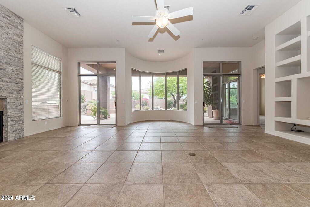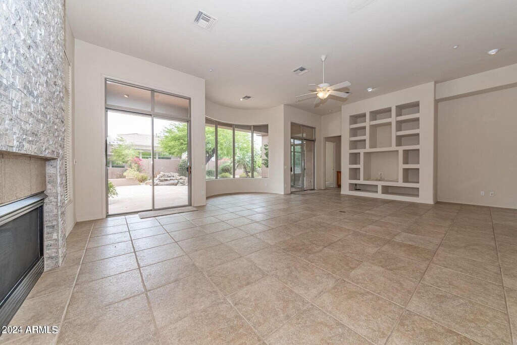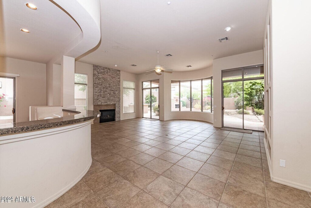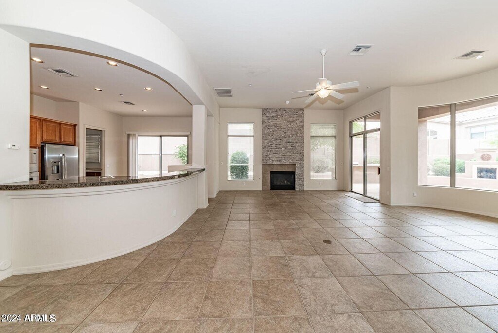 For a faster response to inquiries and scheduling a time to tour the property, please call Ricardo. Perched high atop Cimarron Edge with amazing views, sweeping panoramic city Lites & views of the Valley. Neutral decor with 20'' tile thru out-carpet in Br's. 3rd BR or den with lg walk-in closet. Fabulous island kitchen w/granite and coria. Bkyd should be in Phx Home & Garden: multiple extended flagstone patios, gas kiva fireplace w/banco seating, water feature, built-in gas BBQ island with seating, great, lush landscaping +views. MBR exits to back yd & has 2 walk in closets, huge bath. Walk to Private rec ctr with huge negative edge pool, spa, tennis, workout rm, BBQ pavilion, kitchen & ramada all overlooking the Valley. Landscaping included in the monthly rent.