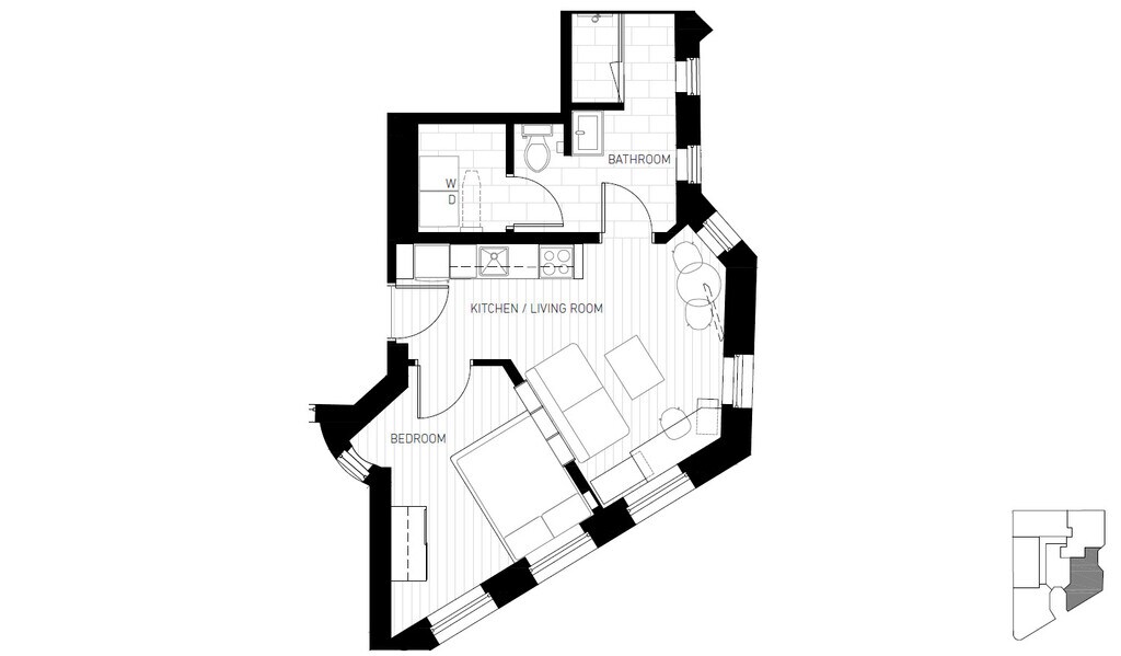 Modelo de apartamento: Model 2Desde $3,150Estudio, 1 Baño, 420 sq ftDisponible Ahora![]()