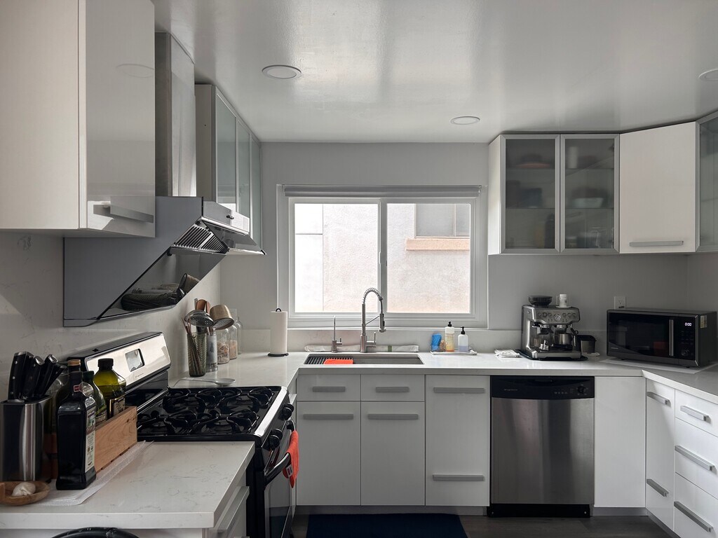 Condominio de dos dormitorios y dos baños, moderno y recientemente renovado, en el corazón de Brentwood, excepcionalmente ubicado cerca de la intersección de San Vicente y Barrington. La ubicación ideal sitúa el condominio recientemente renovado a pocas cuadras de Starbucks, Whole Foods, CVS, The Coffee Bean, Sweetgreen y Chipotle, entre otros restaurantes y boutiques. Soy un joven profesional de cuello blanco cuando tenía 30 años y ocupo el otro dormitorio y baño. En ocasiones (unas cuantas veces al año), puedo tener un pequeño perro rescatado llamado Ellie (mezcla Terrier/Dachshund) que se queda conmigo. Soy limpio, respetuoso y viajo alrededor del 70 % del tiempo (lo que significa que todo el condominio es prácticamente suyo). Acerca del arrendamiento: - Fechas disponibles: 1 de agosto de 2023 - Plazo: mínimo de 1 año - Alquiler: 2000 USD (opción amueblada también disponible por un coste adicional), incluyendo agua y basura - Espacio total: 2 dormitorios, 2 baños con 2 plazas de aparcamiento - Espacio alquilado: 1 dormitorio, 1 baño con 1 plaza de aparcamiento (tándem) Acerca del edificio: - Ubicado en el segundo piso de un edificio de condominios de 10 unidades: el 90 % de las unidades están ocupadas por el propietario; todos los vecinos se conocen entre sí y son extremadamente amables - Ubicado cerca del final de un cul-de-sac – extremadamente silencioso - A pasos de restaurantes, boutiques y estudios cercanos: Starbucks, Whole Foods, CVS, The Coffee Bean, Sweetgreen, Chipotle, Baltaire, Pizanna, Jon & Vinny’s, Teleferic, Sugar Fish, Katsuya, Barry’s y Orange Theory Áreas comunes: - Recién renovado con nuevos pisos de madera, luz, y pintura fresca - Nuevo aire central y calor en todo el condominio - Nuevo lavador y secadora en la unidad - Cierre electrónico de la puerta delantera (nunca tendrá que preocuparse por estar cerrado con llave) - Cocina grande con todos los electrodomésticos/accesorios de cocina y comedor - Balcón grande con muebles y luz natural para leer y relajarse - Puerta y ventanas grandes del balcón del piso al techo - Sala de estar y comedor/mesa grandes (de seis a ocho personas) - Grande de 75 pulgadas, televisor de pantalla plana con suscripción principal (Netflix, Hulu, y Amazon Prime) - Mininevera, minibar, y refrigerador para vinos Su dormitorio y baño incluye: - Recién renovado con pisos de madera nuevos, pintura clara y fresca - Nuevo aire central y calor en todo el condominio - De ~150 a 200 pies cuadrados de tamaño; puede caber fácilmente una cama King o Queen - Armario grande con estantes organizados - Baño individual, ducha e inodoro con amplio espacio de almacenamiento - Espacio de estacionamiento individual (estacionamiento en tándem) Solo consultas graves.