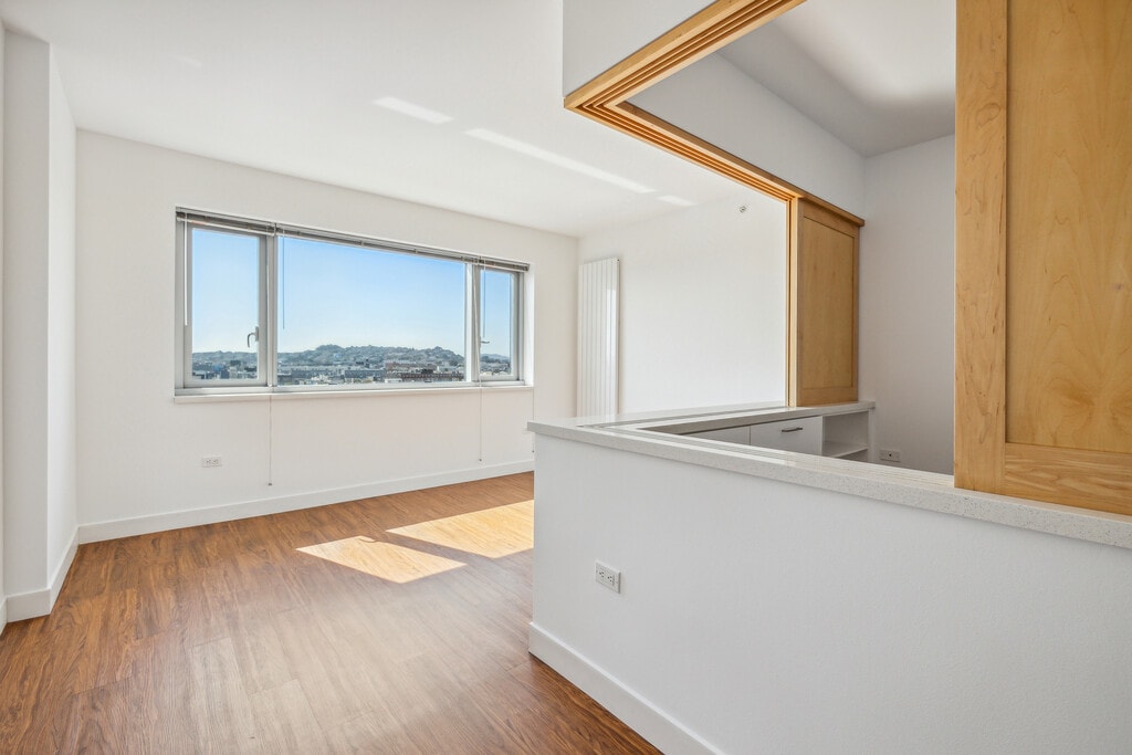 El apartamento de alquiler de tus sueños en San Francisco te espera. Elevándose con impresionantes vistas del cercano centro de la ciudad de San Francisco, South of Market, 1190 Mission en Trinity Place, es tan espectacular como su propiedad hermana ubicada al lado. Estos lujosos estudios y apartamentos de 1 y 2 habitaciones están ubicados en el Distrito SOMA de San Francisco, cerca de la nueva sede central de Twitter, el Orpheum Theater, el Moscone Center, el AT&T Park, sede de los San Francisco Giants y mucho más. Los apartamentos están ubicados en el punto de partida central para llegar a cualquier lugar de San Francisco con facilidad y están cerca de Muni o BART, desde donde puedes ir a trabajar o donde puedes pasar una noche en uno de los lugares más populares de San Francisco. En Trinity Place, puedes alquilar o arrendar estudios, apartamentos de 1 o 2 habitaciones, que incluyen amplios techos altos y grandes ventanas para disfrutar de las espectaculares vistas de San Francisco. Disfrutarás de preparar comidas gourmet en tu moderna cocina con los mejores electrodomésticos y encimeras de granito negro. Pisos símil madera y de azulejos cerámicos...