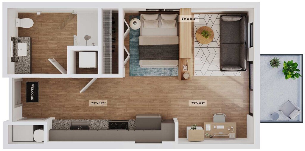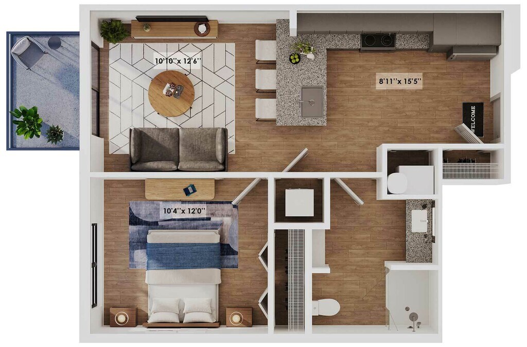 Estudio, 1 Baño, 559 pies²Disponible AhoraEl más grandeEsta opción tiene las unidades más grandes para este modeloGalería del Modelo