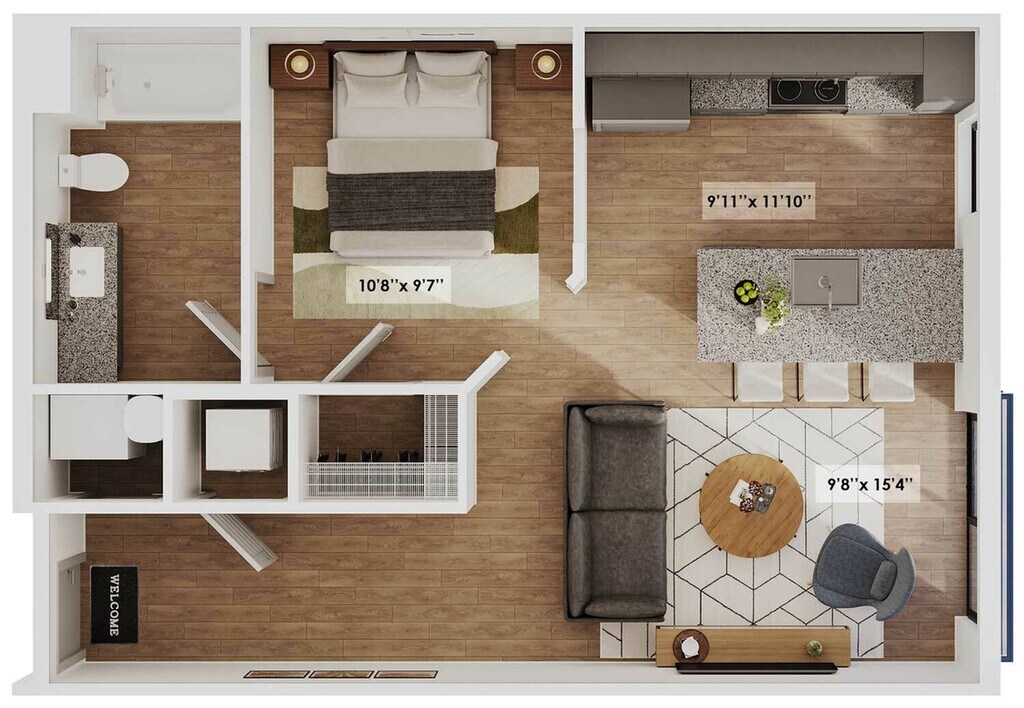 1 Dormitorio, 1 Baño, 663 pies²Disponible AhoraGalería del Modelo