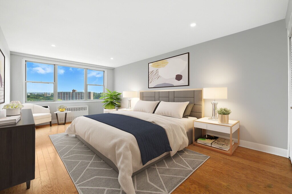 Welcome to Crystal House in downtown White Plains! This spacious 2-bedroom, 2-bath corner apartment offers over 1,200 square feet of open living with incredible natural light, hardwood floors, and a private balcony. The modern layout flows seamlessly from the living room into a dedicated dining area and updated kitchen, perfect for both entertaining and everyday living. Enjoy skyline and treetop views that remind you you’re in the heart of the city, while the building’s location on a quieter residential street provides a sense of peace and privacy. It’s truly the best of both worlds—just steps away from White Plains’ vibrant downtown shopping, dining, and transportation, yet nestled in a neighborhood setting that feels tucked away. Crystal House is a well-maintained, full-service building featuring a doorman, live-in superintendent, secure lobby, and elevators, with easy access to major highways and Metro-North. This home combines convenience, comfort, and space—all in one of the most sought-after locations in Westchester! _______ NTN Screening is required. Link can be provided upon request. Rent Application, info & fees can be sent to you upon request. Fee breakdown: (a) Payable by Applicant(s) due at Submission: $550.00 Non-Refundable Application Processing, $150.00 Non-Refundable Credit/Background Report for each Applicant & each additional Applicant, $150.00 Non-Refundable Background Report for each person that is not an applicant but will occupy the unit & who is 18 years or older. (b) Payable by Applicant(s) due after Approval: $250.00 Move in Security Deposit (refundable upon verification from Super that no damage was caused to common areas during move). Utilities to be paid by tenant. Laundry room on floor. Doorman hours: 9am-9pm, 7 days a week.