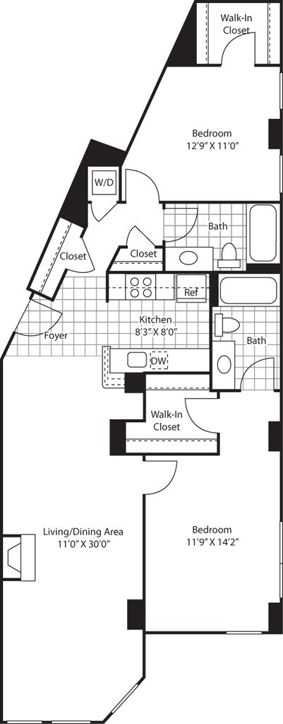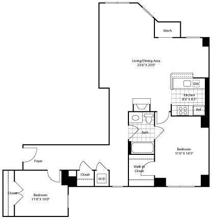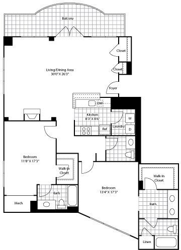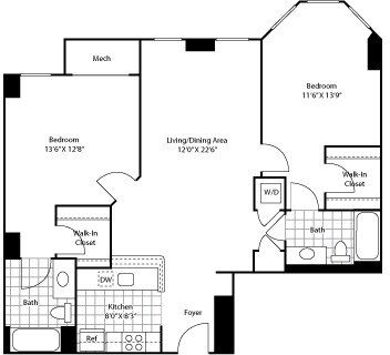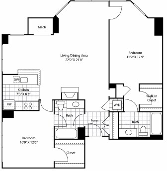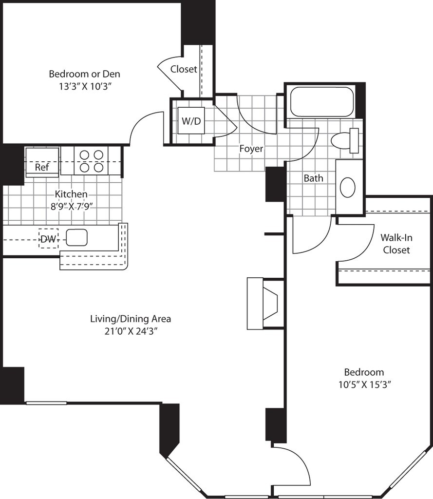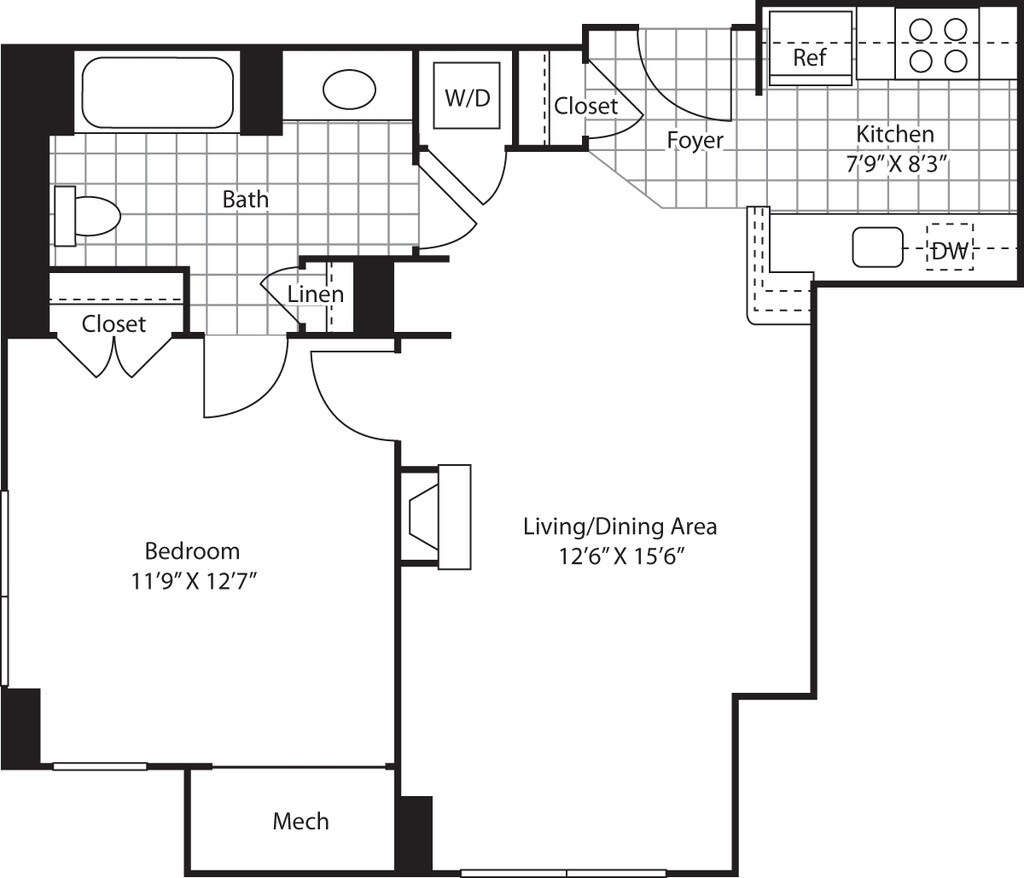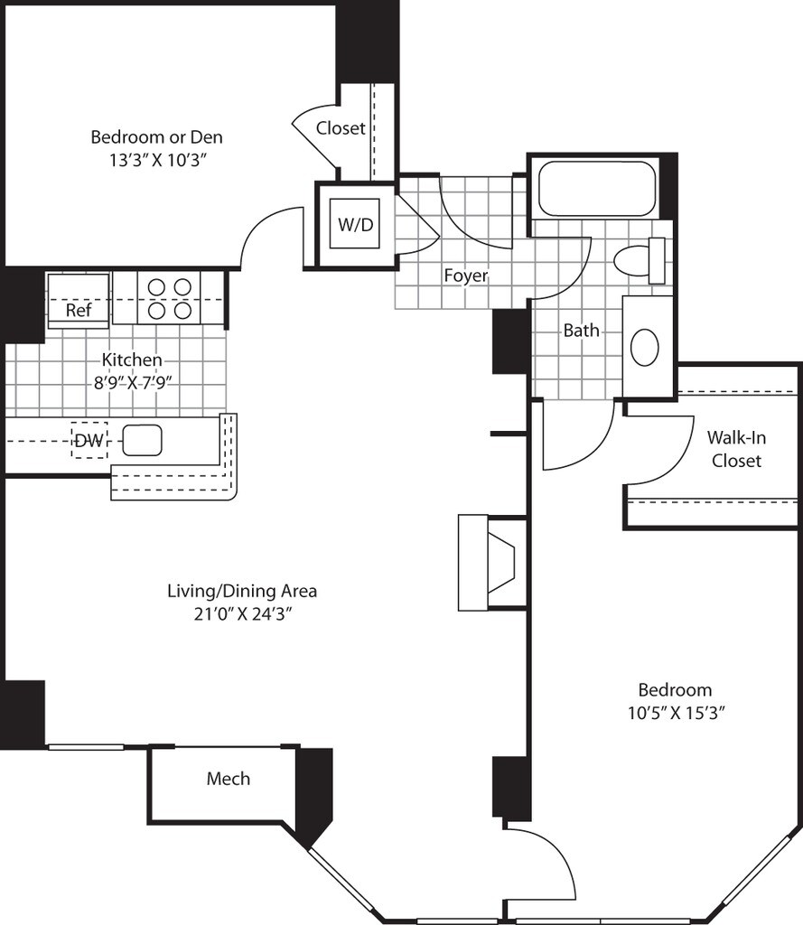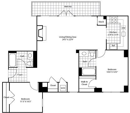 Modelo de apartamento: PierreLlame para Precios1 Dormitorio, 1 Baño, 690 sq ftNo Disponible![]()