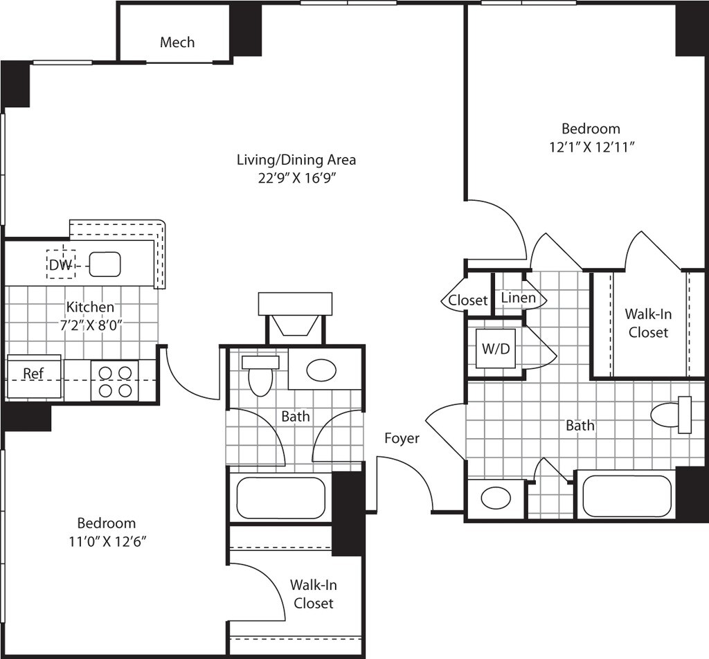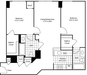 1 Dormitorio, 1 Baño, 978 pies²Disponible AhoraEl más grandeEsta opción tiene las unidades más grandes para este modeloGalería del Modelo