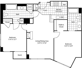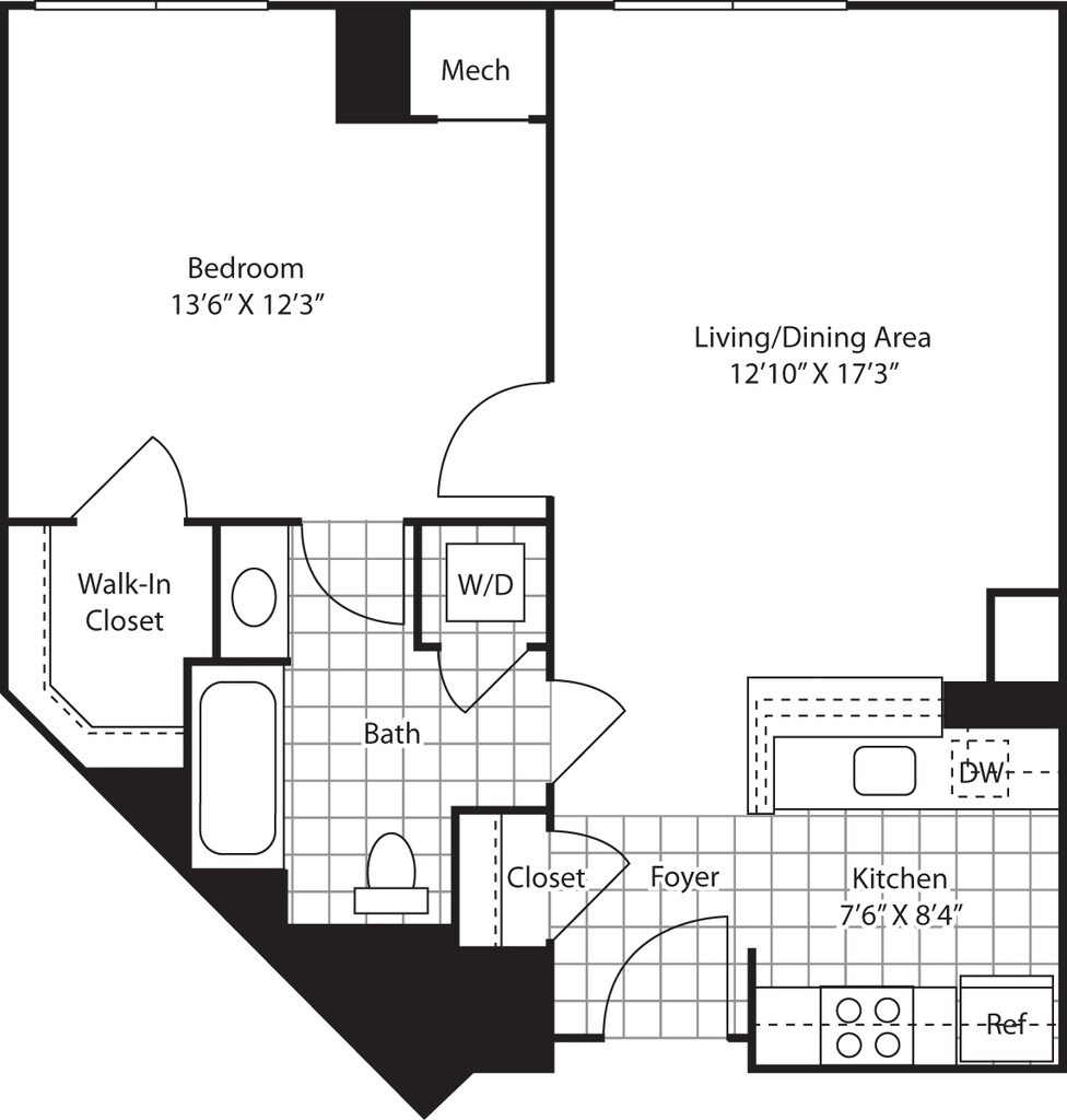 Modelo de apartamento: SacramentoLlame para Precios1 Dormitorio, 1 Baño, 700 sq ftNo Disponible![]()