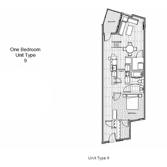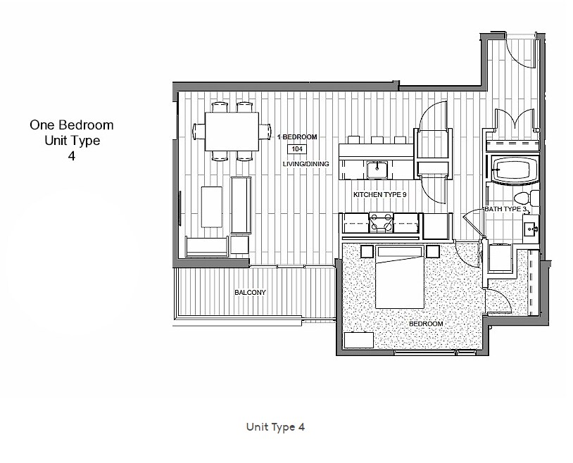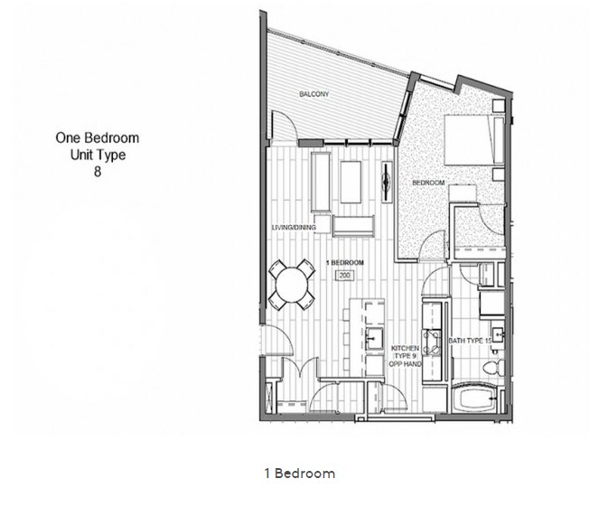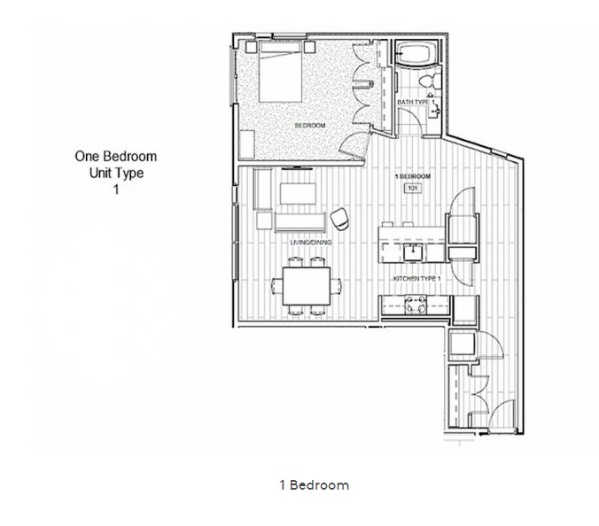 1 Dormitorio, 1 Baño, 845 pies²Galería del Modelo
