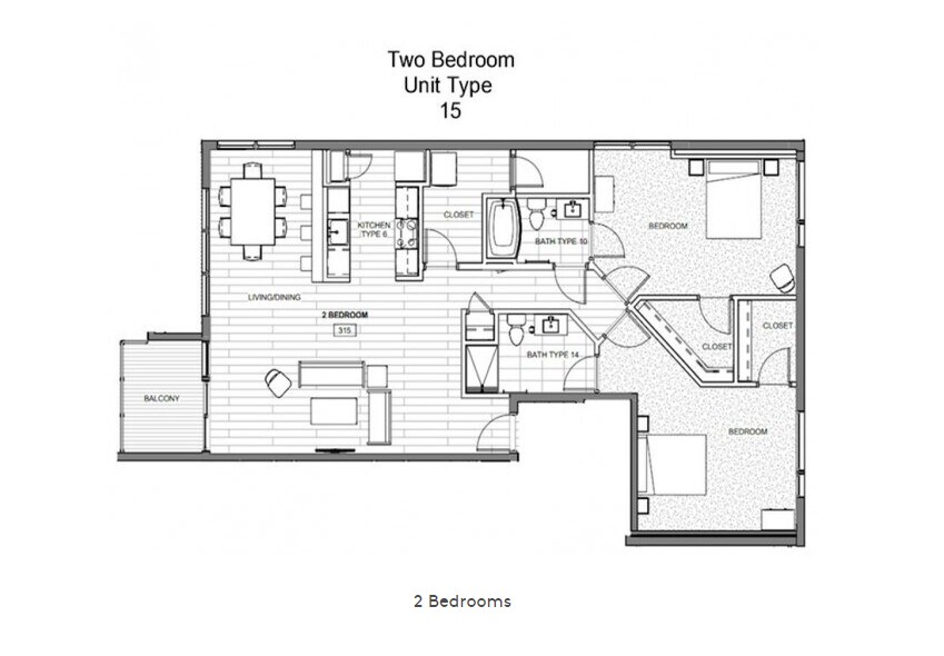 Modelo de apartamento: A1E$1,9751 Dormitorio, 1 Baño, 769 sq ftNo Disponible![]()