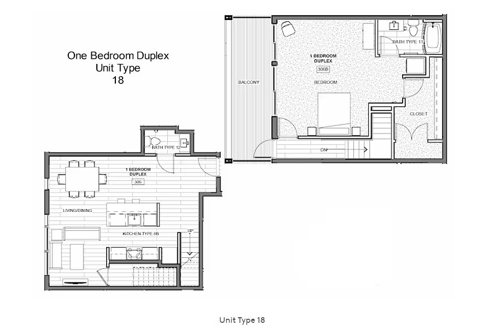 1 Dormitorio, 1 Baño, 702 pies²Galería del Modelo