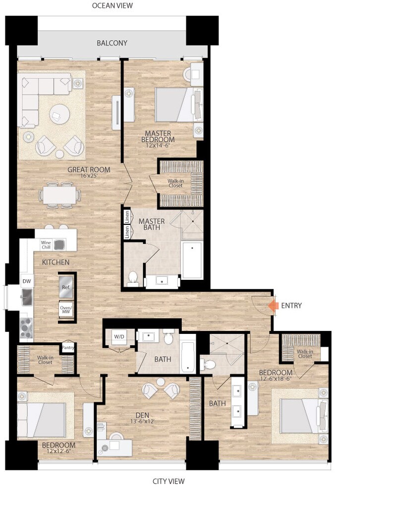 Modelo de apartamento: Penthouse A$24,5003 Dormitorios, 3 Baños, 2288 sq ftDisponible AhoraPenthouse A - Plano 1