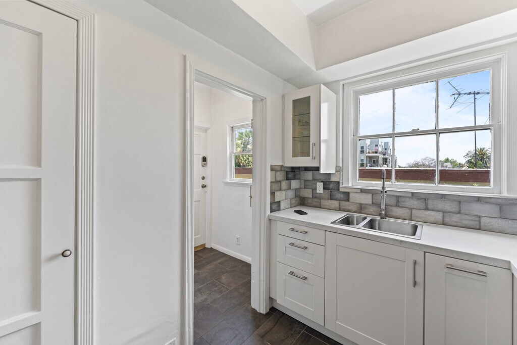 This bright and charming 1 bed / 1 bath is located in the heart of West Hollywood. A private front entrance leads you up a staircase into this light-filled upper unit, featuring high ceilings, large windows, and a bay window overlooking a serene courtyard and koi pond. The bedroom opens onto a private balcony—perfect for morning coffee—with space for a table and two chairs. The updated kitchen includes washer/dryer hook-ups, and the unit will feature brand-new solid oak flooring. All lighting and ceiling fans have recently been replaced. This quiet 8-unit building, originally built in 1940, is home to respectful, professional neighbors and carries a star-studded history. One garage parking space is included. Non-smoking and drug-free property. Well-behaved pets welcome. If you're looking for a peaceful, safe, and unique place to call home, this is the one!