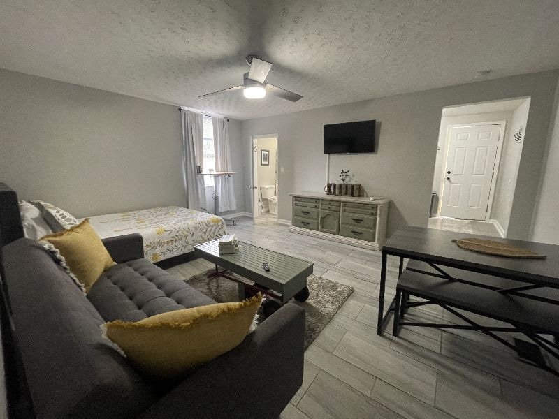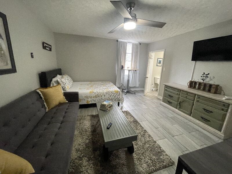 Furnished Studio near Fountain Square – Pet Friendly Fully furnished studio apartment at 1238 S State Ave, Unit 4, Indianapolis, IN 46203 with a private entrance, private bath, and in-unit washer/dryer. Just a 5-minute walk to Fountain Square dining and nightlife. Details: 30-day minimum stay Pet friendly Utilities & furniture included Best for 1 person (extra $250 per additional occupant) Free on-site parking, close to public transit Amenities: Kitchenette (stovetop, dishwasher, fridge, microwave, cookware), linens, starter toiletries, 65” Smart TV, high-speed WiFi, heating/AC, safety features provided. Perfect for professionals seeking comfort and convenience in a prime location.