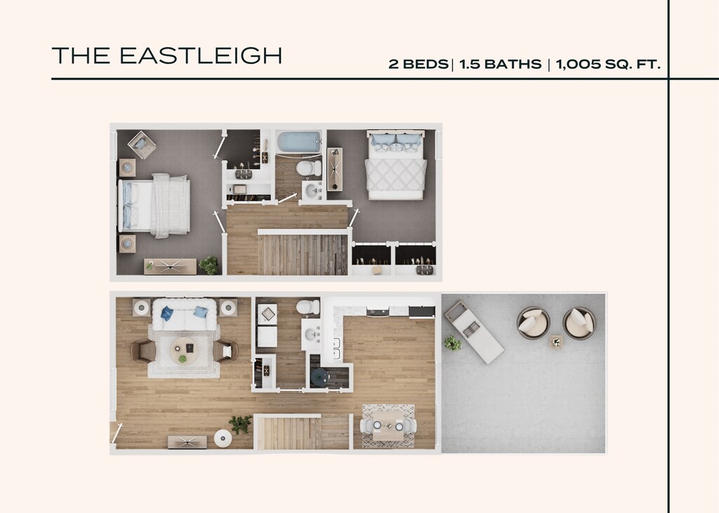 The Eastleigh - Plano 1 Unidad de apartamento: 1299Modelo de apartamento: The Eastleigh$1,5252 Dormitorios, 1.5 Baños, 1005 sq ftDisponible December 12, 2025