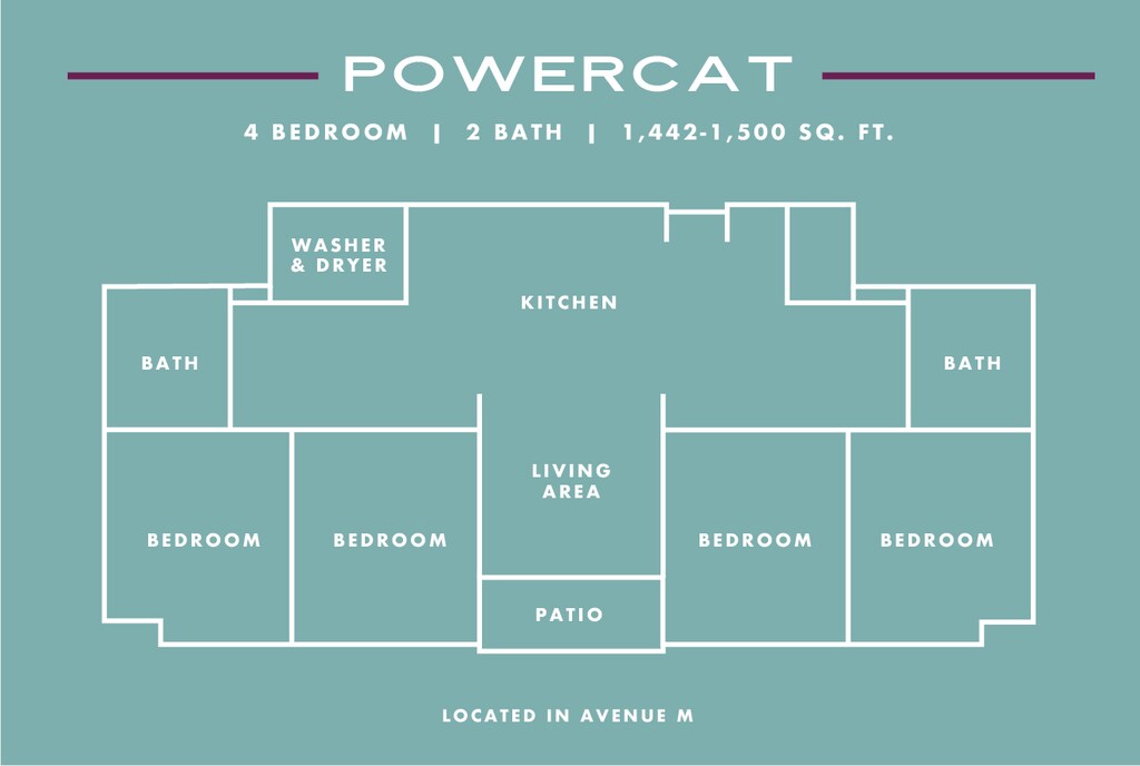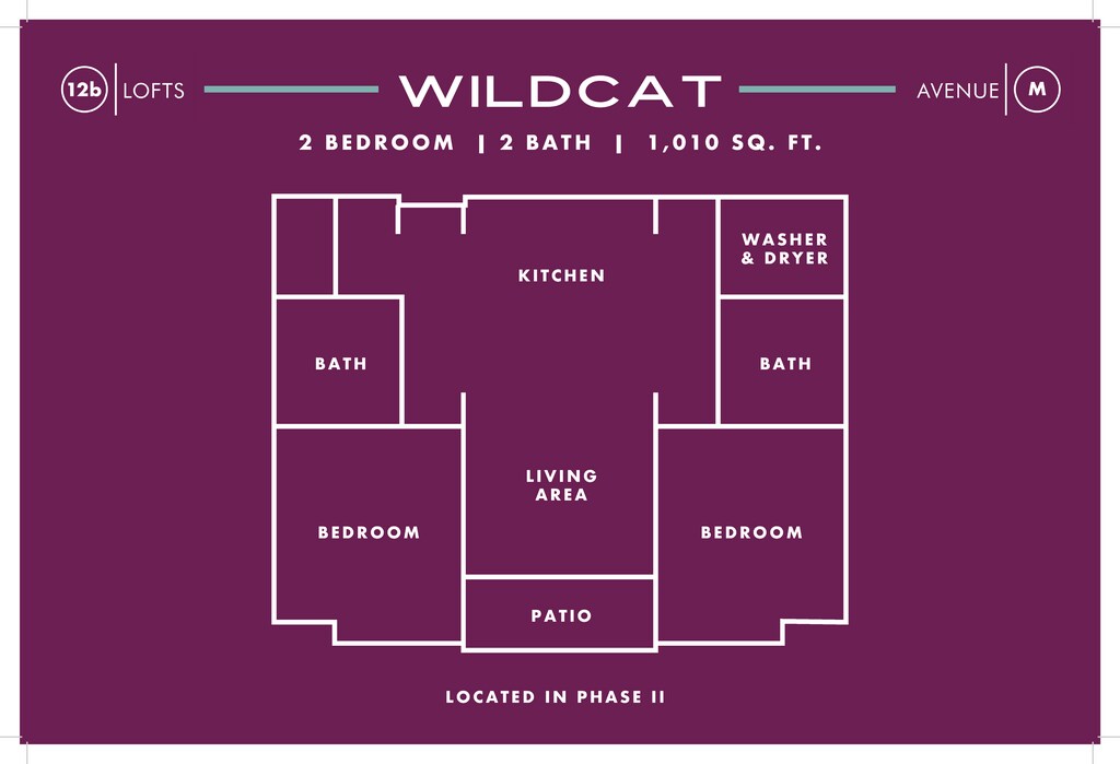 12B II 2x2 Wildcat - Plano 1 Unidad de apartamento: PrivateModelo de apartamento: 12B II 2x2 Wildcat$8692 Dormitorios, 2 Baños, 1010 sq ftDisponible August 14, 202612B II 2x1 Johnny Kaw
