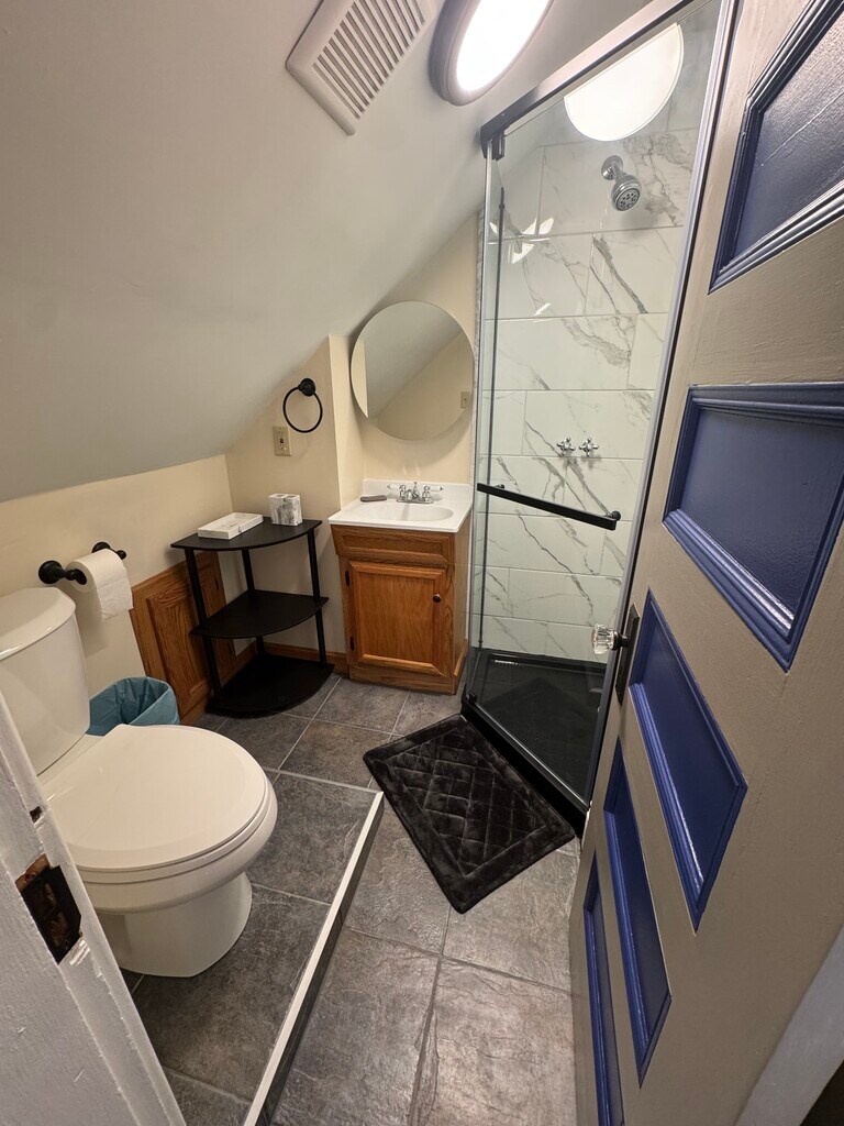 Apartamento tipo estudio en el tercer piso con escalera privada. Acogedor y bien iluminado con electrodomésticos de acero inoxidable.
