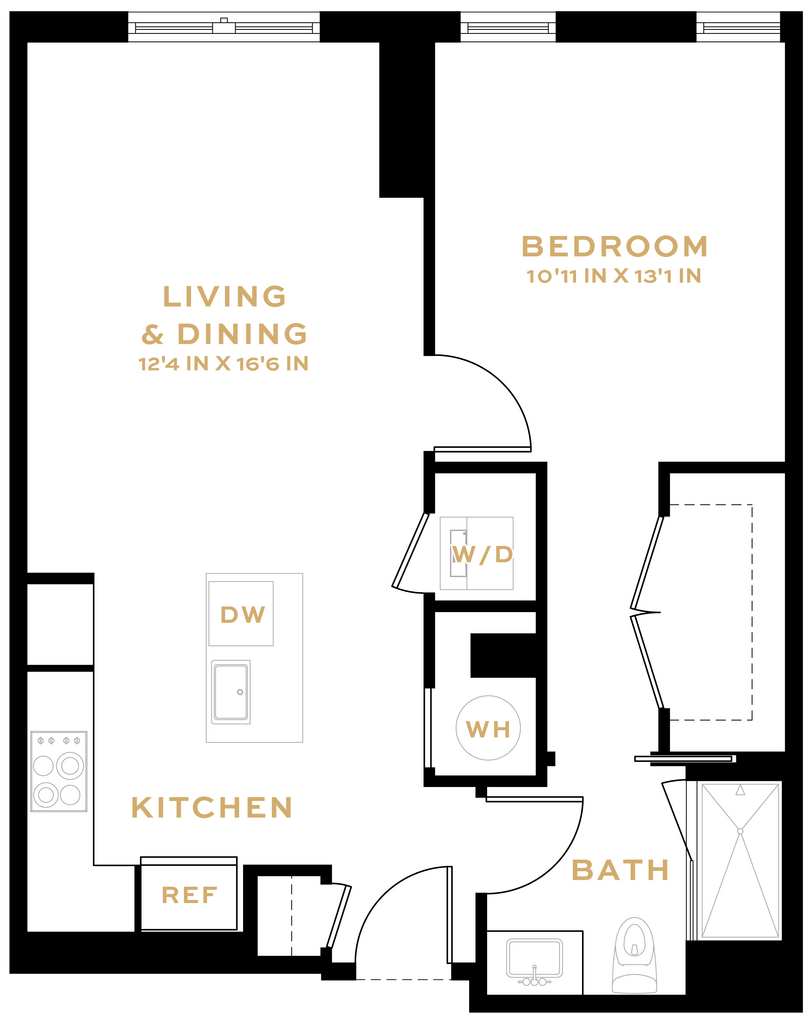1 Dormitorio, 1 Baño, 719 pies²Disponible AhoraGalería del Modelo