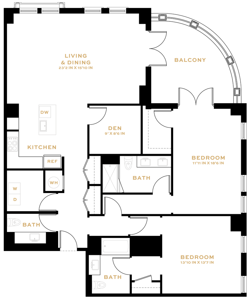 Modelo de apartamento: 1 Bedroom Den - 1 Bath | AD051 Dormitorio, 1 Baño, 931 sq ftDisponible Ahora![]()