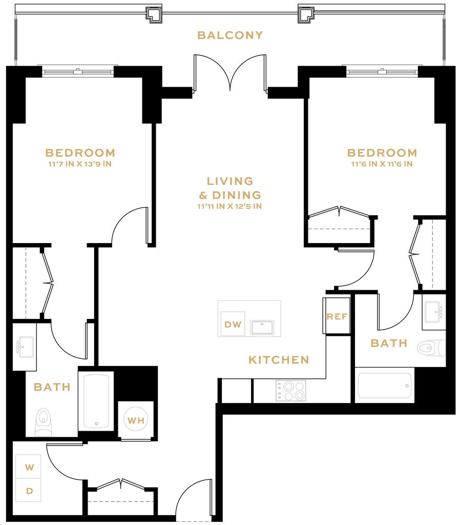 1 Dormitorio, 1 Baño, 945 pies²Disponible AhoraGalería del Modelo