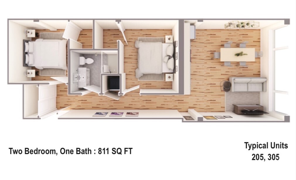 2 Dormitorios, 1 Baño, 811-824 pies²Detalles de Diponibilidad