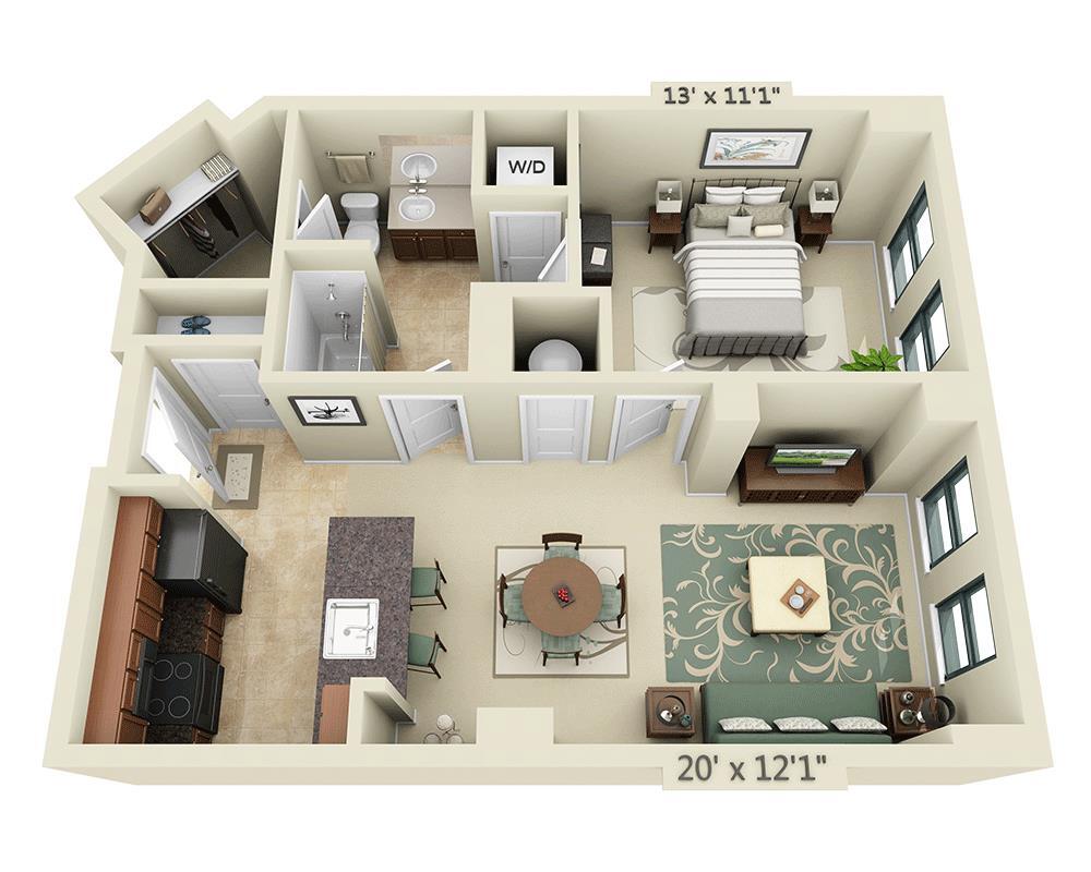 1 Dormitorio, 1 Baño, 747 pies²Disponible AhoraGalería del Modelo