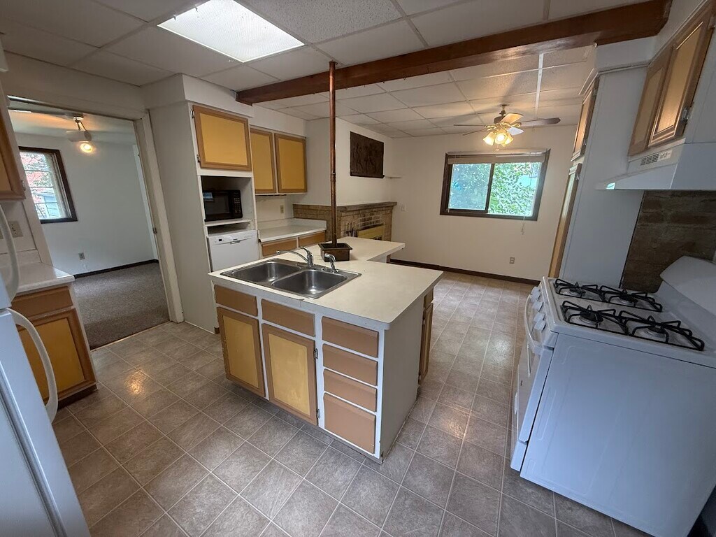 1/2 Off Security Deposit! Rent this entire house with a garage. Only one block from entertainment and shopping. This house has a nice large kitchen with a separate dining room to entertain in and a decorative fireplace. There is a front porch for those nice lazy summer days and spacious den in back that overlooks the backyard. There is a ton of storage in the basement that has hookups for laundry. Cats and dogs are welcome.