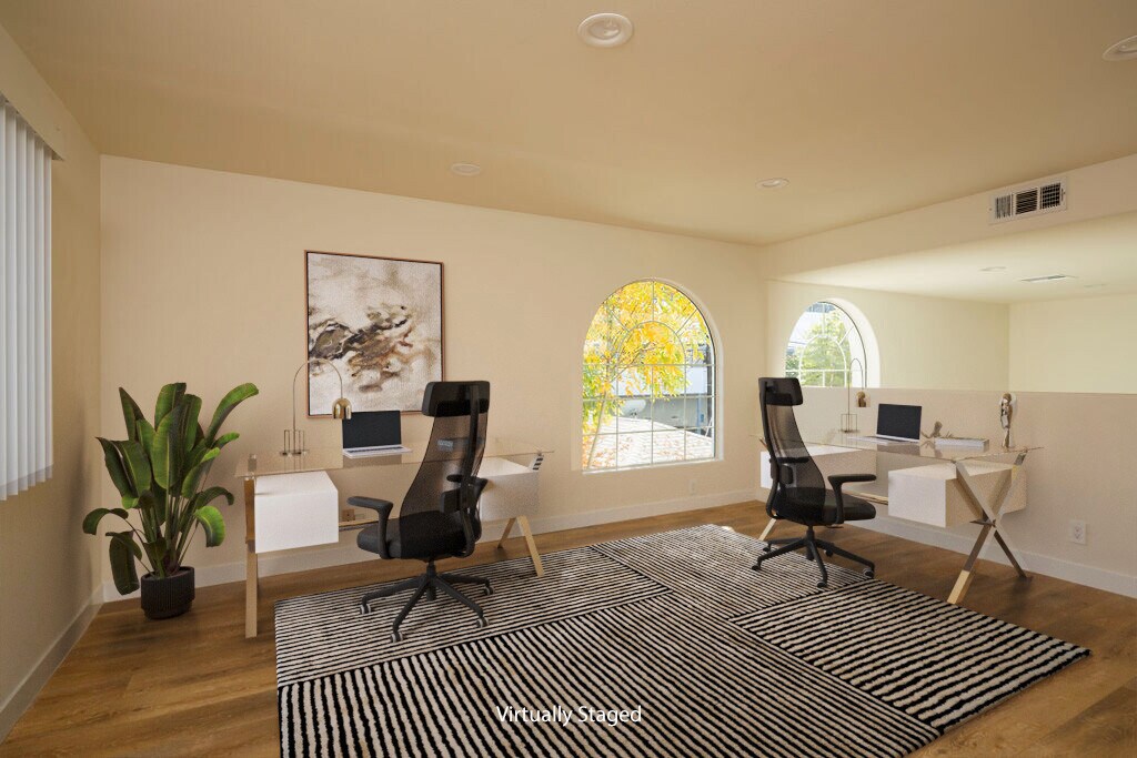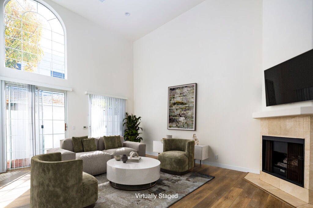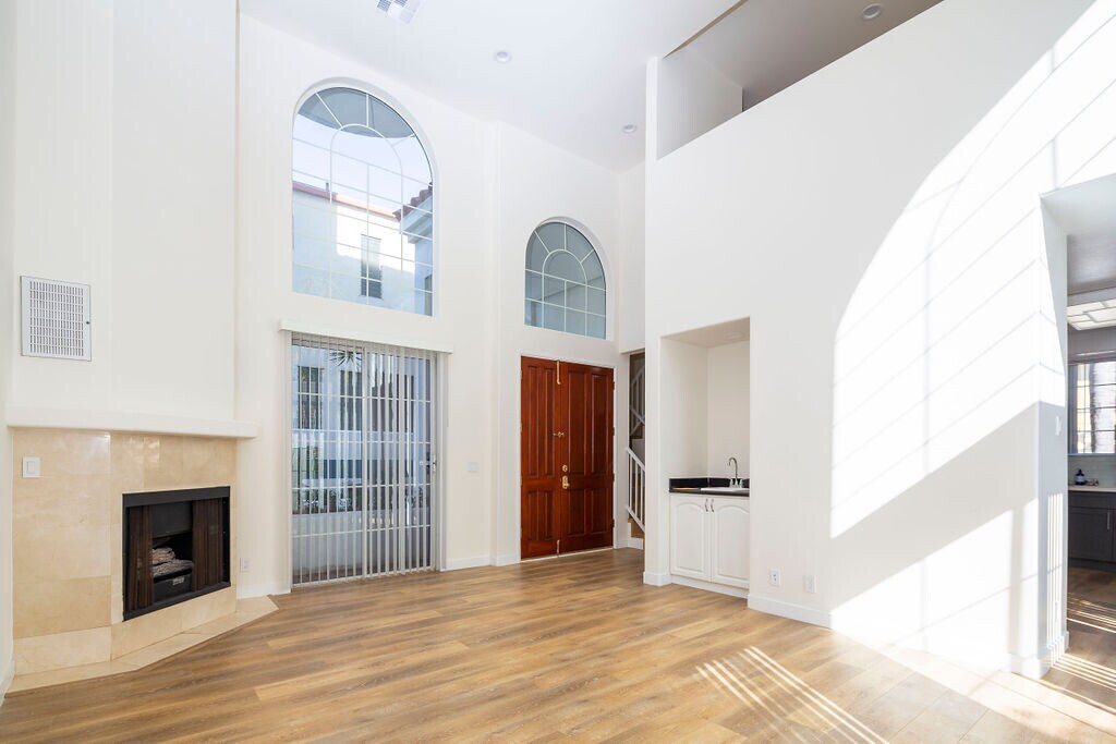 Dramatic, front-facing townhome with four private outdoor spaces in amazing location in close proximity to restaurants and upscale shopping. Upon entering, you are greeted by light flooding into living spaces and ~20 foot ceilings. Recently updated kitchen with stainless steel appliances, new quartz countertops, and backsplash. Spacious great room featuring beautiful wood flooring, fireplace, and private patio running the length of the unit. Enjoy ocean breezes through sliding doors on both sides of the great room. Head upstairs to loft, which overlooks the great room and is the ideal spot for a home office. Loft has small, adjacent room with a window that could be a second office or bonus space. Continue to two generously-sized bedrooms, both with en-suite baths and balconies. On the top level is a large private roof deck. Private 2-car garage with direct access and extra storage. Park your vehicles or make it your home gym. In-unit laundry, gated, intimate 5 unit building & Santa Monica schools. Too many other features to list!