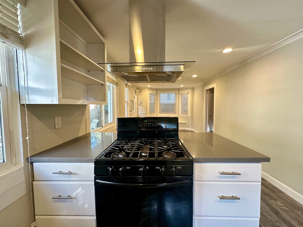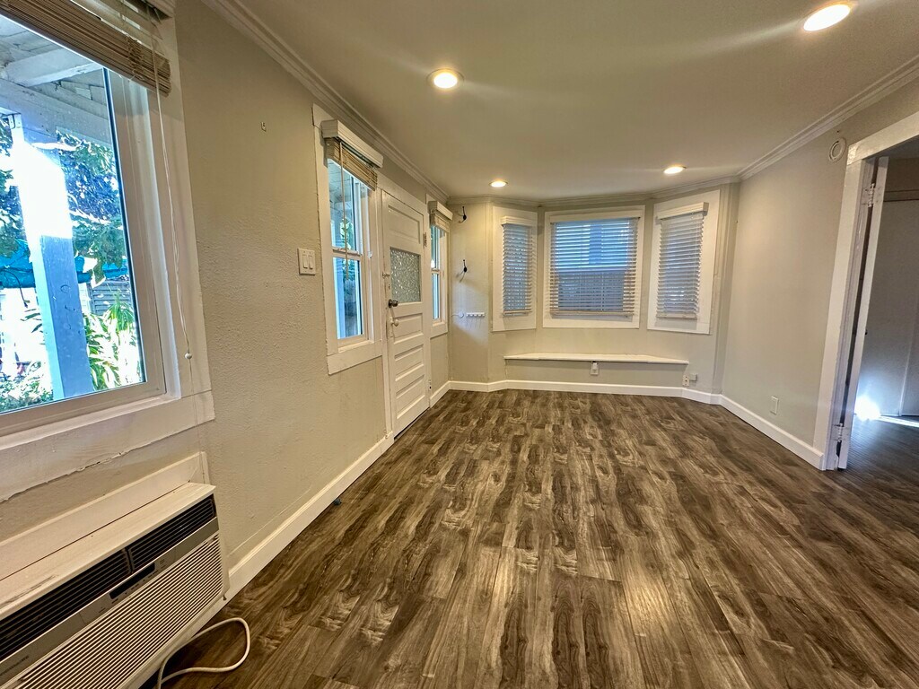 Welcome to your new HOUSE at Camp McCadden. A quiet retreat tucked away from all the action of Hollywood. Property features mature palm & fruit tree's where you will enjoy the birds singing. Newly remodeled house with 2 bedrooms, and 1 bathroom. Living room features bay windows with sitting nook. Combo heat/air wall unit. Open kitchen featuring new cabinets, new Caesarstone countertops, Frigidaire refrigerator, oven, and dishwasher. Both bedrooms with hardwood floors and closets separated by 1 bathroom. Washer & Dryer included! Outdoor shared yard with water feature a lovely place to hang out. Rent $2995 + $50 per month for parking