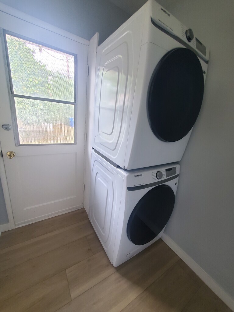 Remodeled & fully equipped large 1+1 townhouse with large private front yard (front fenced yard is more than 400sf) with 6 ft high fence, and shared gated back yard. Townhouse has a large private garage with storage (about 10 ft x 22 ft long) & the garage opens to rear alleyfor $75/mo plus its sec deposit. Townhouse has two entry doors, one front door opening to front yard and one kitchen door opening to back yard. Total number of townhomes on the lot is 3. This is the front unit. It has indoor washer/dryer, dishwasher, hot water heater, microwave, refrigerator. oven, light, bright, sunny with a nice breakfast bar and desk in the kitchen facing large orange tree in the back yard. This unit has very minimal shared walls throughout the unit. It is a very quiet complex. Tenant pays share of LADWP and outdoor cleaning/gardening, large old fruit tree in the rear yard, avail for mo-mo