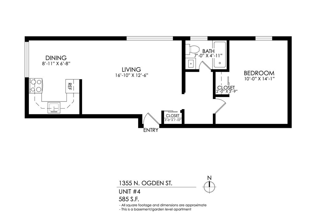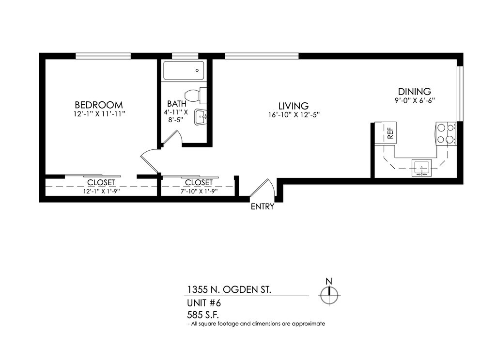 1 Bedroom, 1 Bath - Plano 5 Los planos son representaciones artísticas. Todas las dimensiones son aproximadas. El producto y las especificaciones reales pueden variar en tamaño o detalle. No todas las características están disponibles en cada vivienda en alquiler. Por favor, consulta con un representante para obtener más detalles.