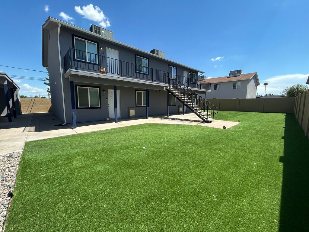 Subdivision: LA MESITA Beautiful Remodeled 2 Bed 1 Bath 4 Plex, Private lot with spaces artificial turf, Stainless steal appliances in the kitchen adorn with grey cabinets and Wood like LPV flooring, Every room has ceiling fans and every unit has its own Washer & Dryer. Included one coved spot.