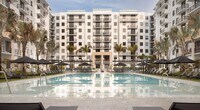 Step into a world where timeless Miami glamour meets modern sophistication in the heart of North Miami. These elegant residences feature sleek interiors with a vintage-inspired twist, offering spacious layouts, wood-style flooring throughout, and high ceilings for an open, airy feel. Gourmet kitchens boast two-toned cabinetry with brass hardware, Jet Mist black granite countertops, custom tile backsplash, and GE stainless steel appliances, including French door refrigerators. Enjoy the convenience of in-unit stackable washer and dryer, walk-in closets, blackout roller shades, and smart thermostats for ultimate comfort. Designed to elevate your lifestyle, the community offers an impressive array of resort-style amenities. Relax on the pool deck with private cabanas and BBQ stations, recharge in the state-of-the-art fitness center with yoga and aerobics room, or unwind in the resident lounge, business center, or library. Additional conveniences include concierge service, keyless entry, secured storage rooms, bike storage, electric car charging stations, and pet-friendly features like a dog park and pet washing station. With stunning views, rooftop terraces, and spaces designed for both work and play, this is North Miami living at its finest. Schedule your private tour today and experience a lifestyle that blends classic elegance with contemporary comfort.