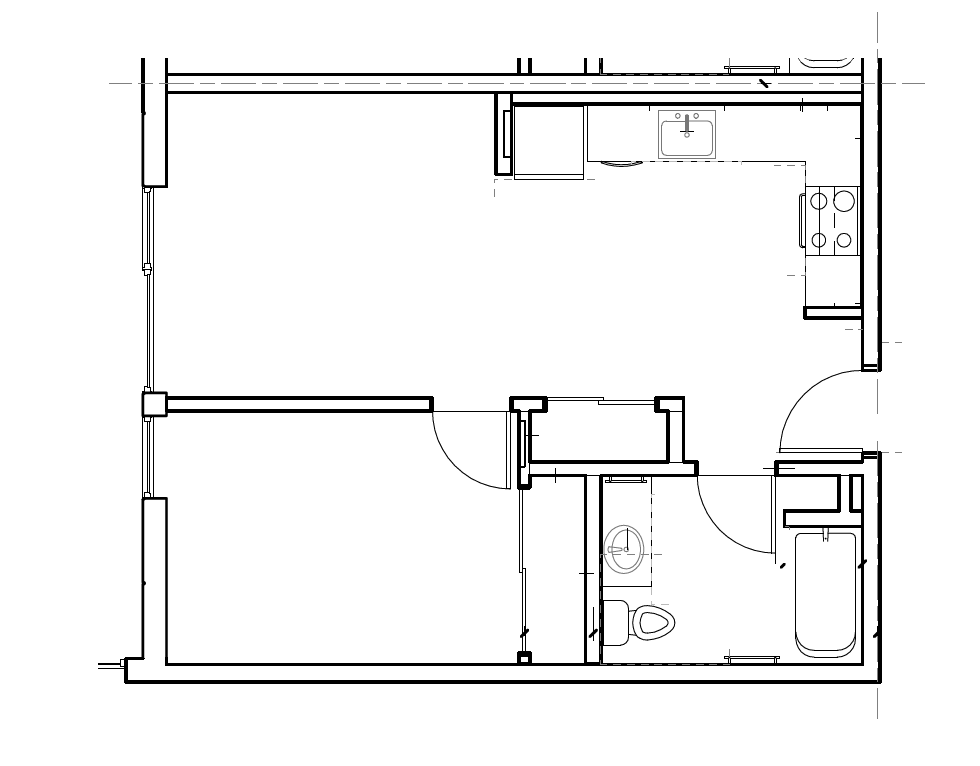 1 Dormitorio, 1 Baño, 500 pies²Galería del Modelo