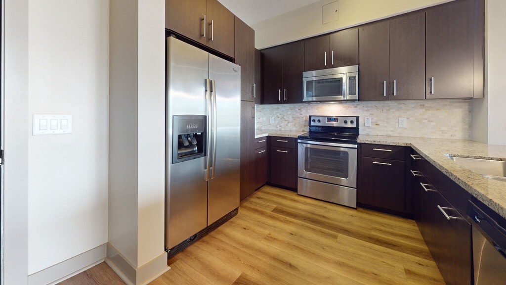13th & Market ofrece comodidades extraordinarias, cuenta con elegantes apartamentos de lujo en el centro de San Diego. Estos apartamentos de San Diego cuentan con los mejores acabados, que incluyen pisos de madera, encimeras de mármol y cuarzo, gabinetes estilo espresso y electrodomésticos de acero inoxidable. Disfruta de cocinas modernas, amplias suites principales, baños de lujo, lavadoras y secadoras en el hogar y vistas impresionantes de la ciudad. Los residentes disfrutan de acceso al salón en la azotea con impresionantes vistas, un comedor formal, un cibercafé, estacionamiento privado con control de acceso y un gimnasio estilo spa. Además de las comodidades sofisticadas, apreciarás el acceso conveniente a lo mejor de San Diego. ¡Programa una cita hoy mismo! Actualmente, ofrecemos recorridos autoguiados y virtuales.