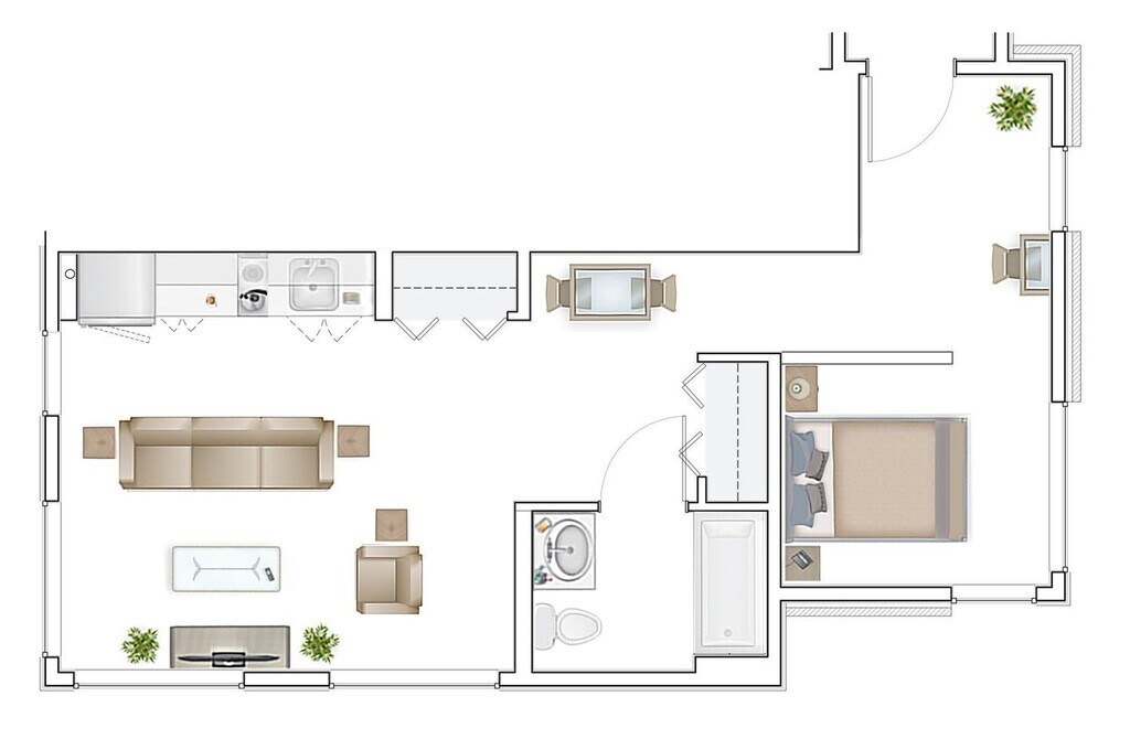 1 Dormitorio, 1 Baño, 576 pies²Disponible AhoraGalería del Modelo
