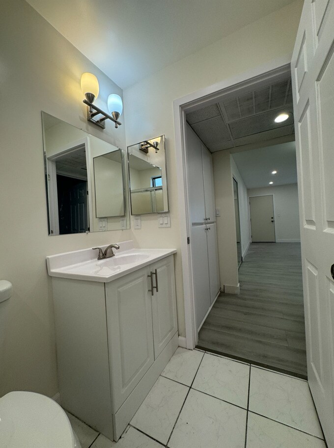Freshly painted with hardwood flooring apartment located in a small multifamily building and great neighborhood with a covered parking spot and A/C. It's month to month tenancy. No smoking allowed. Tenant will pay the apartment electricity bill (extra utility cost). Gas (warm water), water, sewer, sanitation bills payments are included in the monthly rental amount.